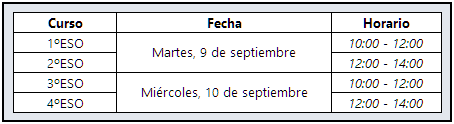 Se informa de las fechas y horarios específicos para recoger los libros del Programa Releo+. Se recuerda que los convocados son aquellos que tienen la ayuda de libros concedida. Los libros se recogerán en el Rincón de Lectura. Paralelamente, se informa de que los alumnos que tienen derecho a banco de libros ya han sido llamados telefónicamente desde la administración del centro para que vengan a recogerlos. En caso de no haber recibido llamada alguna significa que no hay libros disponibles. |
