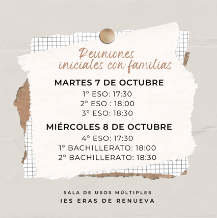 Se informa de las fechas y horarios de las reuniones iniciales con las familias. Esperamos que sean de su interés. |